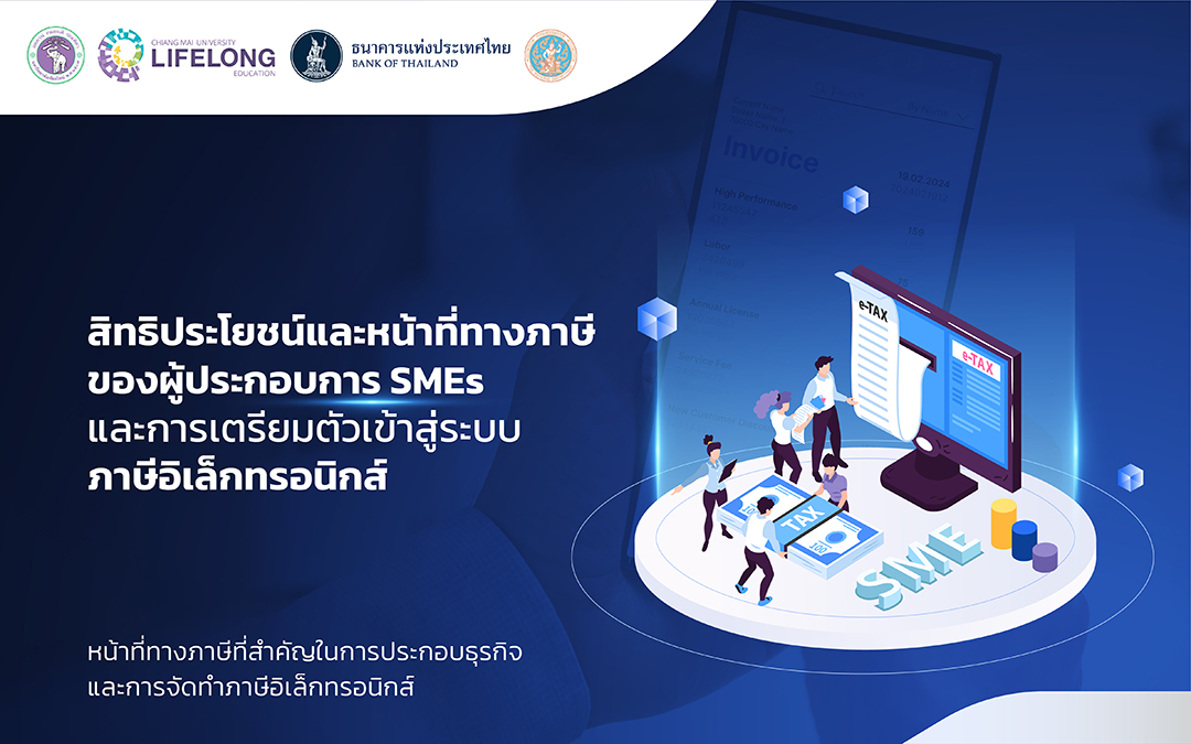 หลักสูตรนี้ออกแบบมาเพื่อเสริมสร้างความรู้ความเข้าใจด้านภาษีให้แก่ผู้ประกอบการ SMEs โดยครอบคลุมเนื้อหาสำคัญเกี่ยวกับหน้าที่และภาษีที่เกี่ยวข้องกับการดำเนินธุรกิจ เปรียบเทียบข้อดีข้อเสียของแต่ละรูปแบบธุรกิจในเชิงภาษี พร้อมแนะนำขั้นตอนการเข้าสู่ระบบภาษีอย่างถูกต้อง รวมถึงสิทธิประโยชน์ทางภาษีที่ผู้ประกอบการทั้งในรูปแบบบุคคลธรรมดาและนิติบุคคลควรรู้ นอกจากนี้ยังเน้นการเตรียมความพร้อมเข้าสู่ระบบภาษีอิเล็กทรอนิกส์ อาทิ การนำส่งภาษีผ่านระบบ e-Withholding Tax และการจัดทำเอกสารภาษีอิเล็กทรอนิกส์ โดยได้รับเกียรติจากคุณอุดมลักษณ์ เพชรโรจน์ นักวิชาการภาษีชำนาญการพิเศษ สำนักงานสรรพากรภาค 8 เป็นวิทยากร ถ่ายทอดความรู้ภายใต้ความร่วมมือระหว่างธนาคารแห่งประเทศไทย สำนักงานภาคเหนือ และสำนักงานสรรพากรภาค 8 เพื่อยกระดับความพร้อมของผู้ประกอบการ SMEs ในการดำเนินธุรกิจอย่างมั่นคงและถูกต้องตามหลักภาษี
