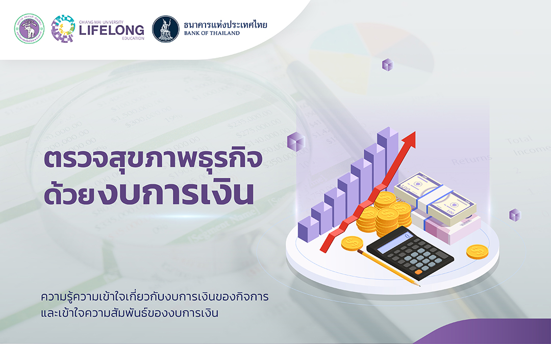 ตรวจสุขภาพธุรกิจด้วยงบการเงิน มีเนื้อหาในการอบรมเกี่ยวกับการวิเคราะห์ความสำคัญ ความสัมพันธ์ของงบการเงิน และความสัมพันธ์ของงบการเงินต่อธรกิจ อันจะสะท้อนภาพของฐานะของธรกิจหรือกิจการได้อย่างชัดเจนผ่านงบการเงินต่าง ๆ เช่น งบกำไรขาดทุน งบดล รวมทั้งวิเคราะห์ความสัมพันธ์ระหว่างงบการเงิน รวมทั้งสามารถวิเคราะห์และปรับทิศทางของธุรกิจได้อย่างทันการณ์และยังใช่ประโยชน์ในการเข้าถึงแหล่งทุนใน อนาคตได้อย่างมีประสิทธิภาพ โดยเป็นหลักสูตรอบรมออนไลน์ในรูปแบบ CMU MOOC ซึ่งเหมาะสมสำหรับผู้สนใจทุกกลุ่มเป้าหมาย เพื่อให้ผู้เรียนมีความรู้ความเข้าใจเกี่ยวกับงบการเงินของกิจการและเข้าใจความสัมพันธ์ของงบการเงินซึ่งเป็นรากฐานของการดำเนินธุรกิจ