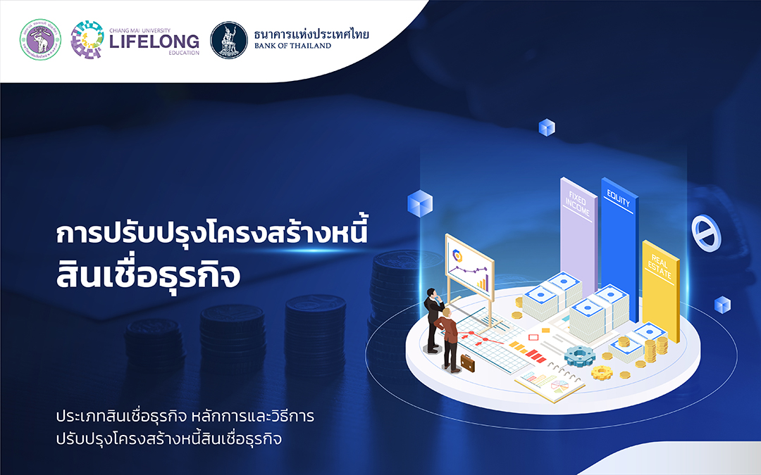 การปรับปรุงโครงสร้างหนี้สินเชื่อธุรกิจ มีเนื้อหาในการอบรมเกี่ยวกับประเภทสินเชื่อธุรกิจ วัดถุประสงค์ของการใช้เงินในสินเชื่อประเภทต่าง ๆ หลักการและวิธีการปรับปรุงโครงสร้างหนี้ ซึ่งจะเป็นแนวทางการแก้ไขปัญหาหนี้ของกิจการได้อย่างมีประสิทธิภาพ โดยเป็นหลักสุตรอบรมออนไลน์ในรูปแบบ CMU MOOC ซึ่งเหมาะสมสำหรับผู้สนใจทุกกลุ่มเป้าหมาย