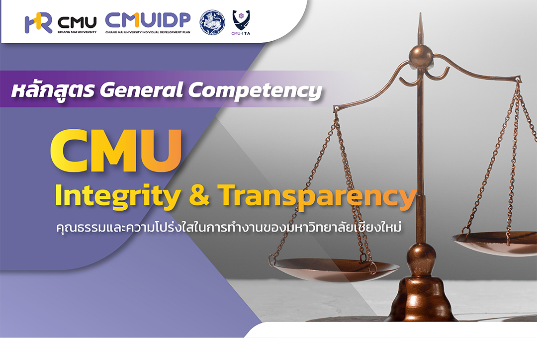 หลักสูตรคุณธรรมและความโปร่งใสในการทำงาน (CMU - Integrity and Transparency) เป็นหลักสูตรเพื่อสร้างความรู้ ความเข้าใจด้านคุณธรรมและความโปร่งใส และส่งเสริมสนับสนุนให้ผู้ปฏิบัติงานทุกส่วนงานยึดถือหลักคุณธรรมและความโปร่งใสเป็นมาตรฐานและแนวปฏิบัติร่วมกัน รวมทั้งเพื่อปลูกฝังจิตสำนึกต้านทุจริตในการปฏิบัติงานด้วยความซื่อสัตย์ให้ปฏิบัติงานตามภารกิจด้วยความโปร่งใส ความซื่อสัตย์สุจริต มีคุณธรรม ปราศจากการทุจริต โดยหลักสูตรประกอบด้วยเนื้อหาที่สำคัญ 3 หัวข้อ ได้แก่ บทที่ 1 การแยกแยะประโยชน์ส่วนตนกับส่วนรวมกับความละอายและไม่ทนต่อการทุจริต บทที่ 2 STRONG Model จิตพอเพียงต้านทุจริต และบทที่ 3 การประเมินคุณธรรมและความโปร่งใสในการทำงานของหน่วยงานภาครัฐ (Integrity and Transparency Assessment: ITA) เพื่อส่งเสริมคุณธรรมและความโปร่งใสแก่ผู้ปฏิบัติงานมหาวิทยาลัยเชียงใหม่